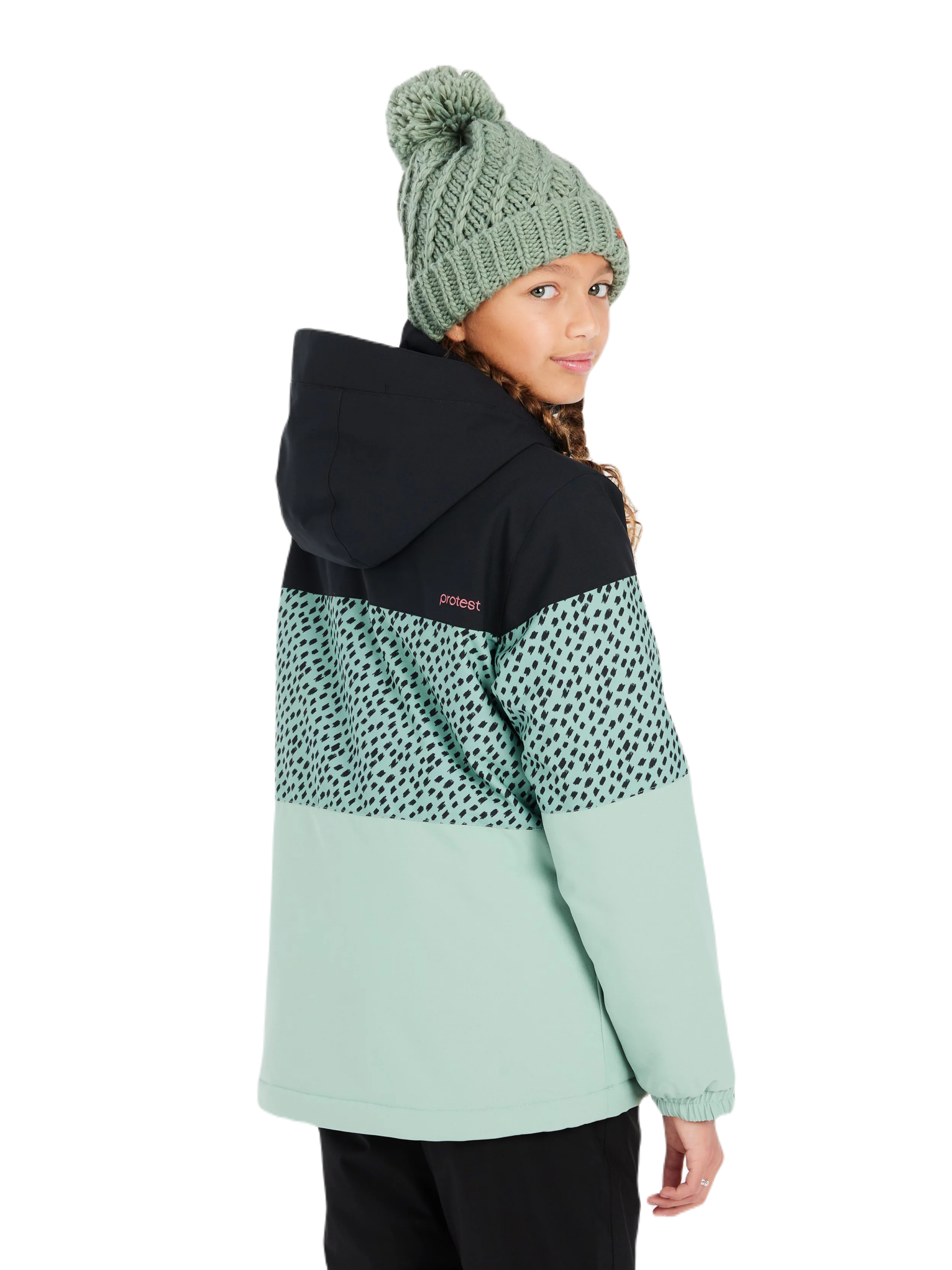 Protest jope FUGEE JR on stiilne ja funktsionaalne laste suusa- ja lumelauajope, mis toob isikupära mäenõlvadele. Saadaval kahes lõbusas mustris, see jope vastab kõigile praktilistele nõudmistele tänu fikseeritud kapuutsile, kriitilistes kohtades teibitud õmblustele, sisemistele mansettidele pöidlaavadega, sisemisele lukkliistule, lumetõkkele ning mugavale suusapileti taskule ja teistele tõmblukuga taskutele. PRTFUGEE JR on tavalise lõike ja pikkusega. Parim osa? See suusa- ja lumelauajope on 10 000 g/m²/24h hingavusega ning sellel on PFC-vaba, 10 000 mm veekindel viimistlus. See tähendab, et sisemine niiskus pääseb välja, kuid väline niiskus ei pääse sisse. Ohutuse huvides ei ole PRTFUGEE JR suurustel 104-128 kapuutsil nööri.